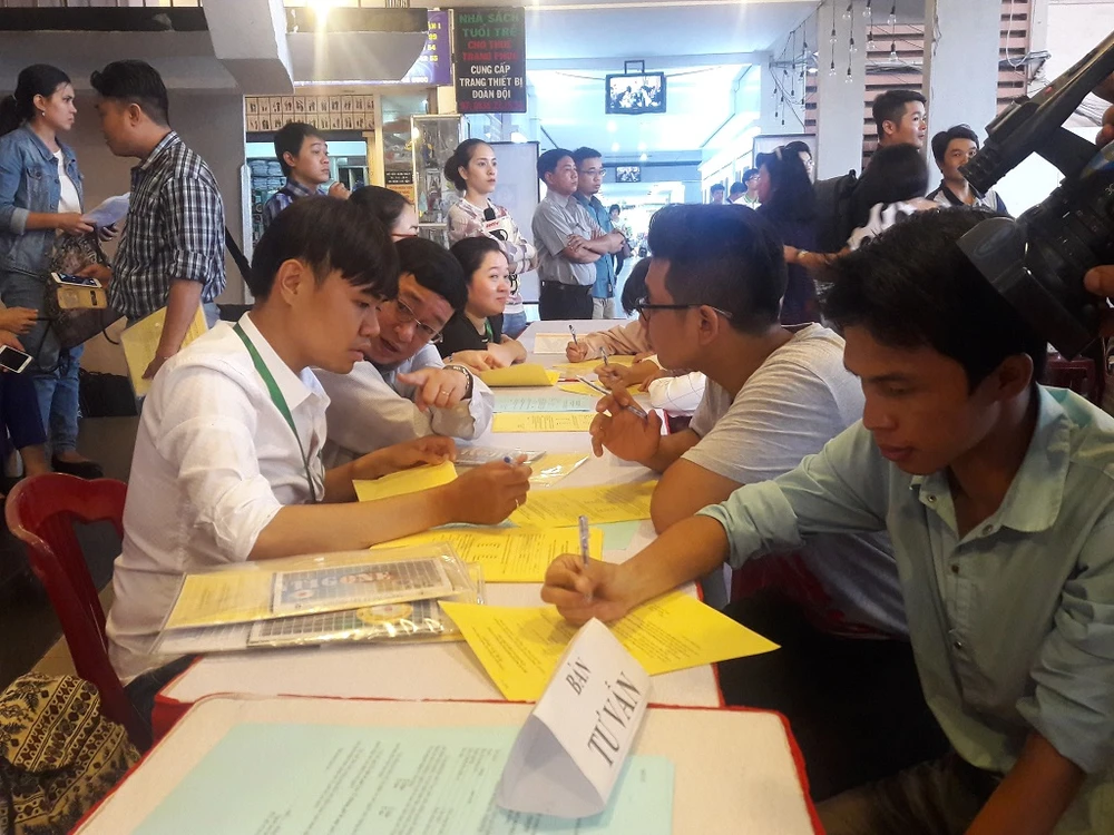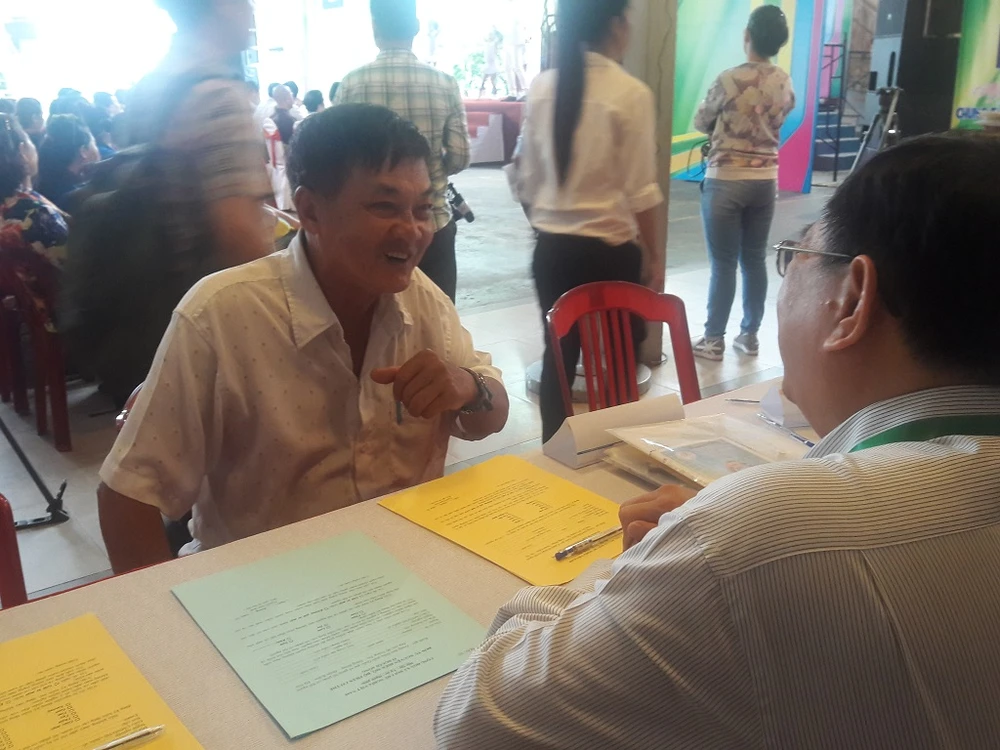 Người dân vui vẻ tư vấn trước khi đăng ký hiến mô, tạng. ẢNH: HÀ PHƯỢNG