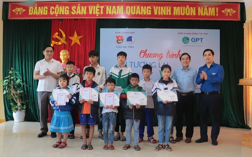 Trao học bổng cho các em học sinh tại Hà Tĩnh. Ảnh: QPT