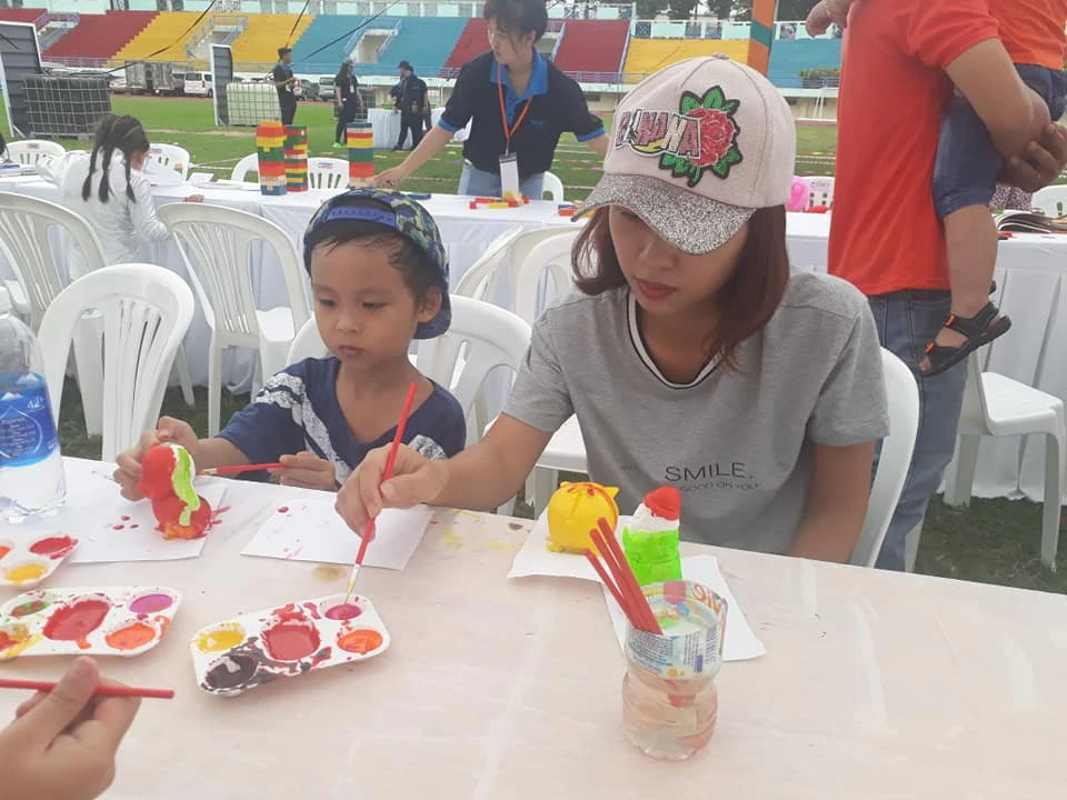 Từ sáng nay, 22-7, ước khoảng 2.000 người lớn và trẻ em là thành viên trong nhiều gia đình đã đến vui chơi, giải trí miễn phí tại Ngày hội "Gia đình là hạnh phúc" tại sân vận động Quân Khu 7, TP.HCM. Tại đây, các gia đình đã tham gia những hoạt động như trải nghiệm công nghệ, trò chơi dân gian, chơi lego, làm tranh cát, tô tượng, làm vòng tay thủ công…