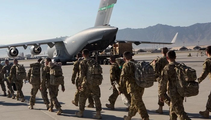 Lính Mỹ rời căn cứ không quân Bargam ở Afghanistan hồi tháng 7. Ảnh: TWITTER