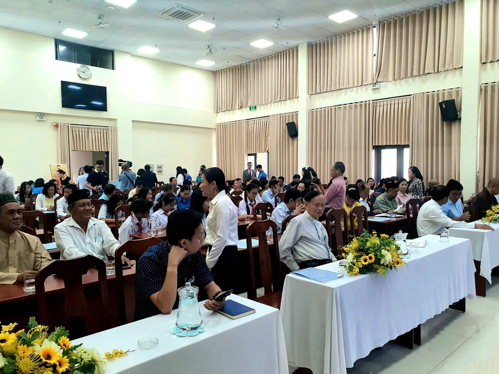 Bà Phan Kiều Thanh Hương, Phó Chủ tịch Ủy ban MTTQ Việt Nam TP.HCM phát biểu tại chương trình. Ảnh: ĐẶNG LÊ