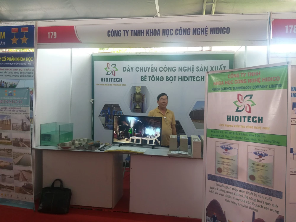Gian hàng giới thiệu về dây chuyền công nghệ sản xuất bê tông Bọt HidiTech của Công ty TNHH Khoa học công nghệ Hidico