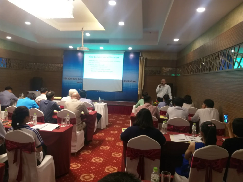 Ông Nguyễn Thành Long - Giám đốc Công ty HidiTech Đồng Tháp chia sẻ kinh nghiệm 16 năm sản xuất và sử dụng bê tông bọt tại tọa đàm