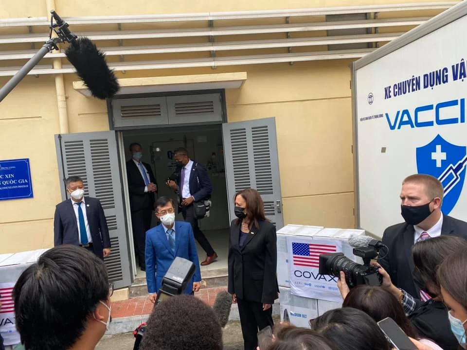 Tại đây bà Harris đã thị sát tại kho vaccine của Chương trình Tiêm chủng mở rộng Quốc gia và chứng kiến những liều đầu tiên trong số vaccine phòng COVID-19 do Chính phủ Mỹ trao tặng cho nhân dân Việt Nam thông qua chương trình COVAX Facility.