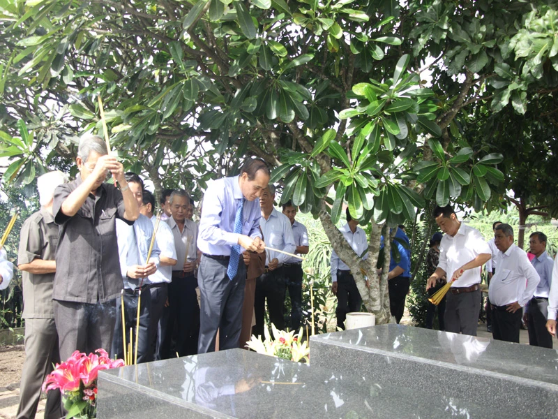 Các đại biểu thắp hương tưởng nhớ tại khu mộ Giáo sư Trần Văn Giàu. Ảnh: Q.Lâm