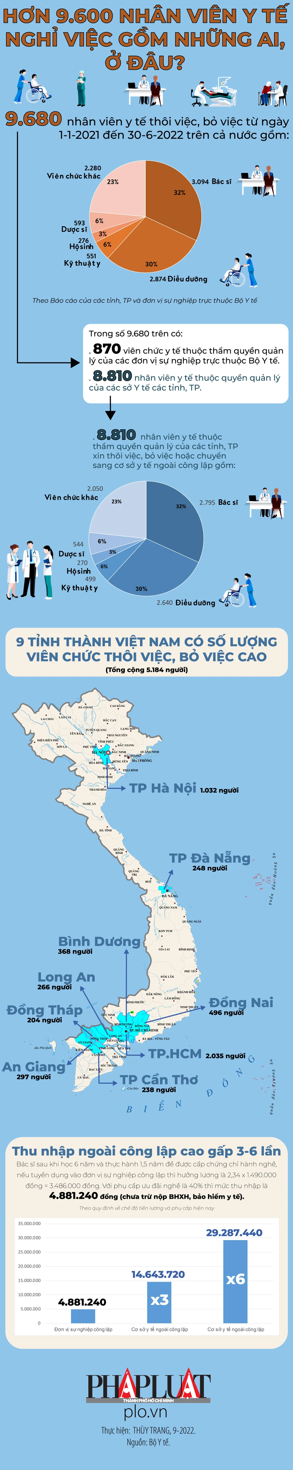 Hơn 9.600 nhân viên y tế nghỉ việc gồm những ai, ở đâu?