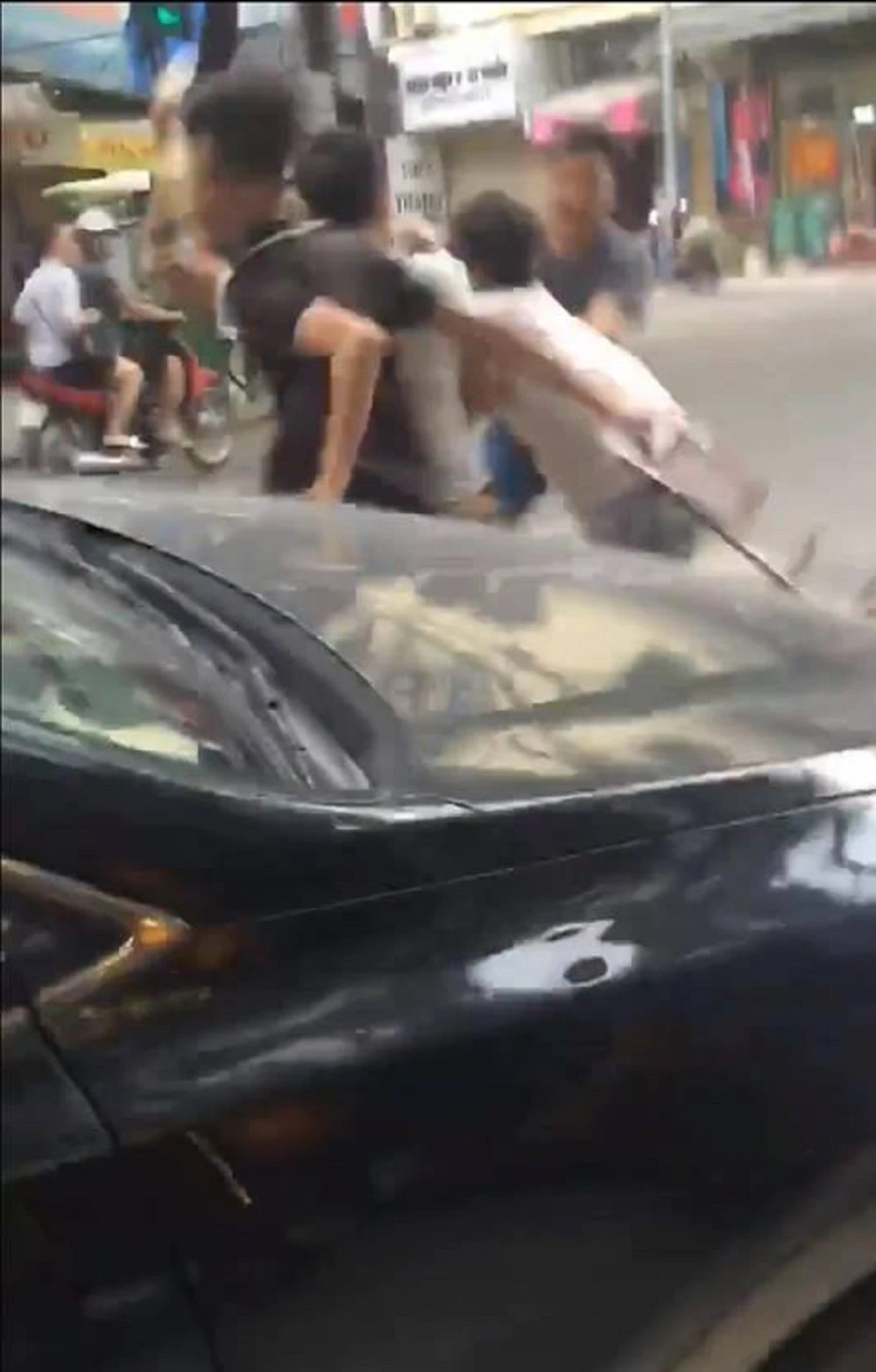 Nhóm thanh niên hỗn chiến tại Hà Nội chiều 10-6. Ảnh cắt từ clip