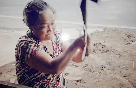 Một cảnh bà Ba dùng búa đập phá khi bà Sương sửa nhà được cộng tác viên ghi lại.