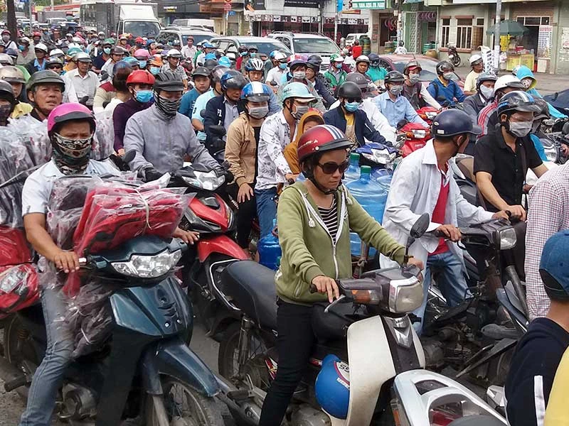 Qua Tết, đường phố Sài Gòn lại đông đúc. Ảnh: HTD