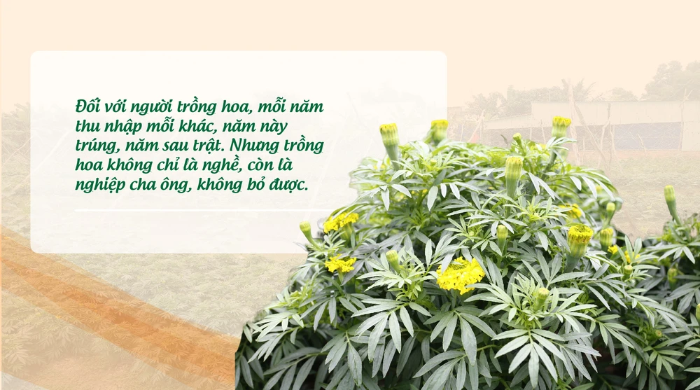 Đối với người trồng hoa, mỗi năm thu nhập mỗi khác, năm này trúng, năm sau trật. Nhưng trồng hoa không chỉ là nghề, còn là nghiệp cha ông, không bỏ được. Bởi tết đến, nhà nào không có chậu vạn thọ thì đâu còn có ý nghĩa mùa xuân?”.