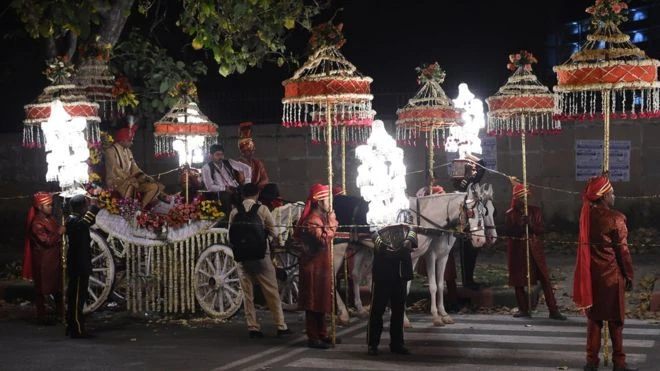 Đoàn xe ngựa chuẩn bị khởi hành đến Delhi để cử hành lễ cưới. Ảnh: Getty