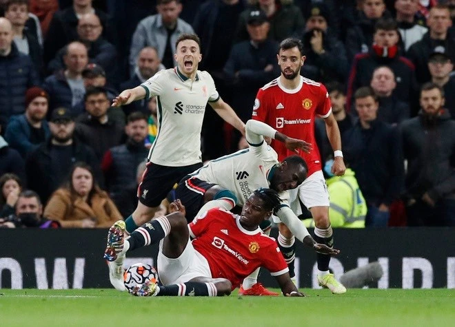 Pogba chỉ vào sân có 15 phút rồi chơi xấu bị thẻ đỏ trong trận MU thua nặng Liverpool 0-5. Ảnh: CGI.