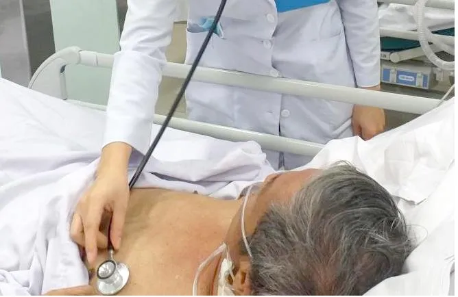 Ông V. đang được bác sĩ kiểm tra sức khỏe. Ảnh: BV CUNG CẤP