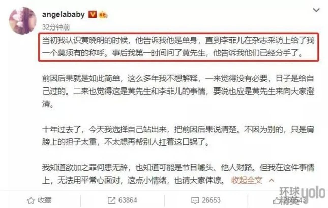 Cũng do điều này, ồn ào việc Lý Phi Nhi ám chỉ Angelababy là người thứ ba chen vào mối quan hệ giữa cô và Huỳnh Hiểu Minh nổ ra lần nữa. Nhanh chóng, Angelababy đã đăng bài viết nói về điều này.