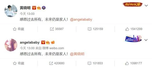 Theo đó, cả hai đã đăng tải bài viết trên weibo cá nhân như một lời xác nhận đã ly hôn: "Cảm ơn những điều đã qua, tương lai vẫn sẽ là người nhà".