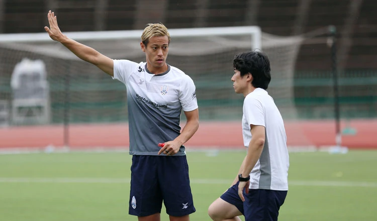 Ở tuổi 34, Honda vẫn còn khát khao làm cầu thủ bóng đá. Ảnh: Khemer Times