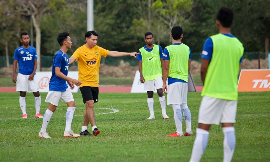 HLV Tan Cheng Hoe (áo cam) tìm lại cảm giác ghi bàn cho học trò.