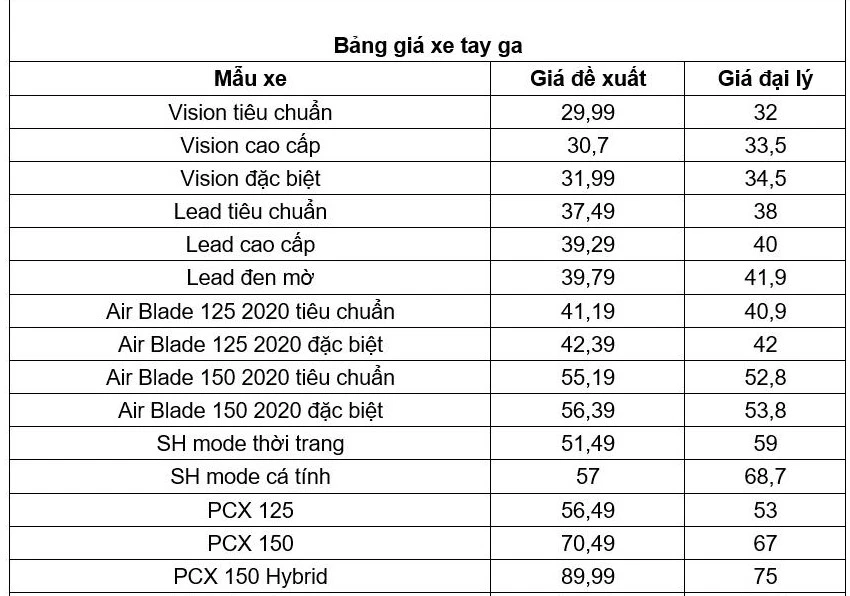 Đối với các mẫu xe tay ga, một số mẫu xe cũng có giảm nhẹ so với tháng trước như Vision, Lead, Air Blade… Mức giảm giá được đại lý áp dụng là giảm 2-3 triệu đồng.