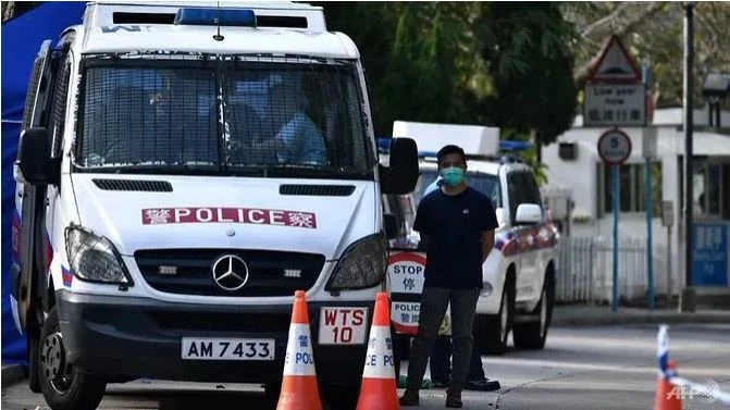 Cảnh sát Hong Kong chốt chặn ở lối vào Làng nghỉ mát Lady MacLehose - khu vực đang là trung tâm kiểm dịch của toàn đặc khu. Ảnh: AFP