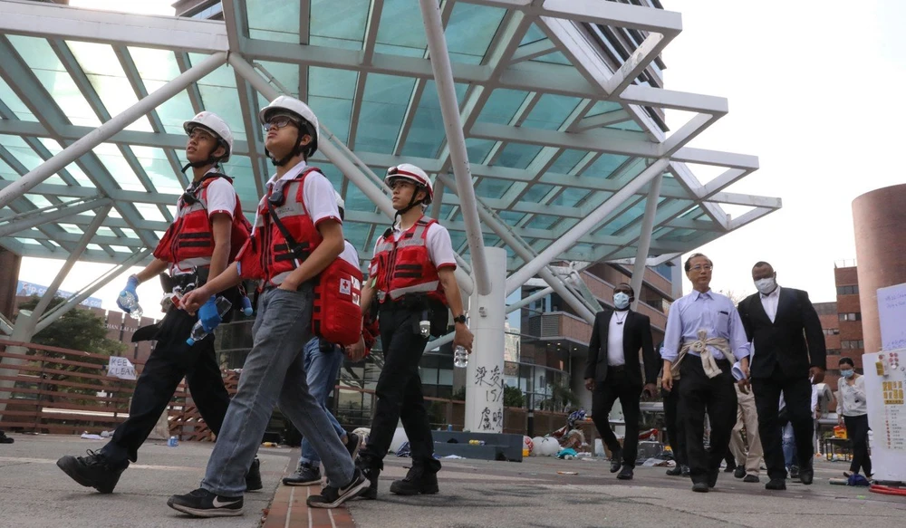 Sau khi PolyU ngày 25-11 yêu cầu chấm dứt phong tỏa, cảnh sát đã tập hợp một “nhóm an toàn” đi vào khuôn viên trường ở Hung Hom và thuyết phục những người biểu tình cố thủ trong đó rời đi.