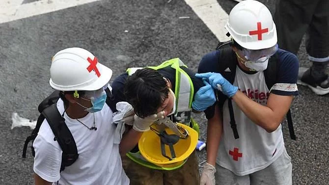 Tính đến 10 giờ tối 12-6, đã có 72 người bị thương phải nhập viện, trong đó có hai người đang trong tình trạng nghiêm trọng, theo một quan chức Bệnh viện Hong Kong.