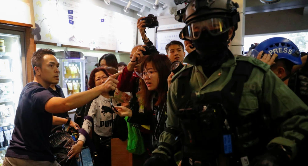 Lực lượng cảnh sát ngăn chặn dòng người biểu tình tại Hong Kong. Ảnh: Sputnik