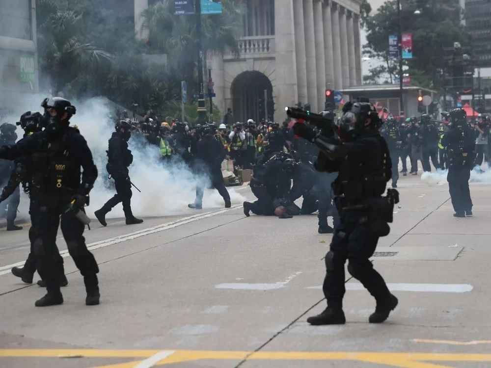 Trong một tuyên bố tối cùng ngày, chính quyền Đặc khu hành chính Hong Kong lên án hành vi “quá khích” của người biểu tình khi tấn công vào những cảnh sát không có vũ trang.