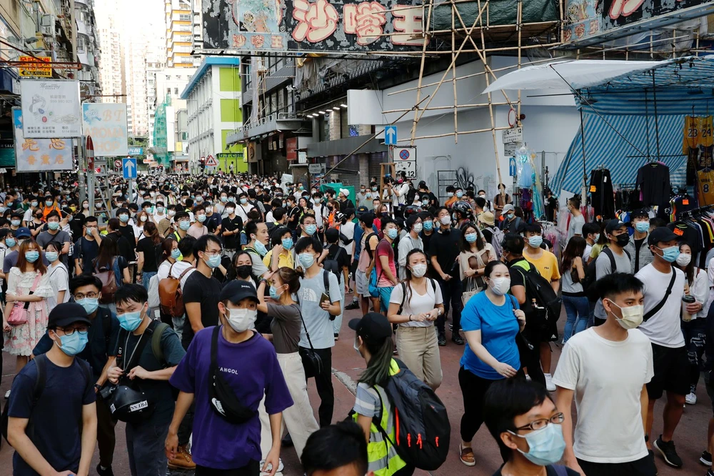Đài CNN đưa tin hàng trăm người dân Hong Kong hôm 6-9 đã xuống đường tuần hành khu Du Ma Địa, bán đảo Cửu Long, để phản đối luật an ninh quốc gia và quyết định hoãn bầu cử Hội đồng Lập pháp đặc khu.