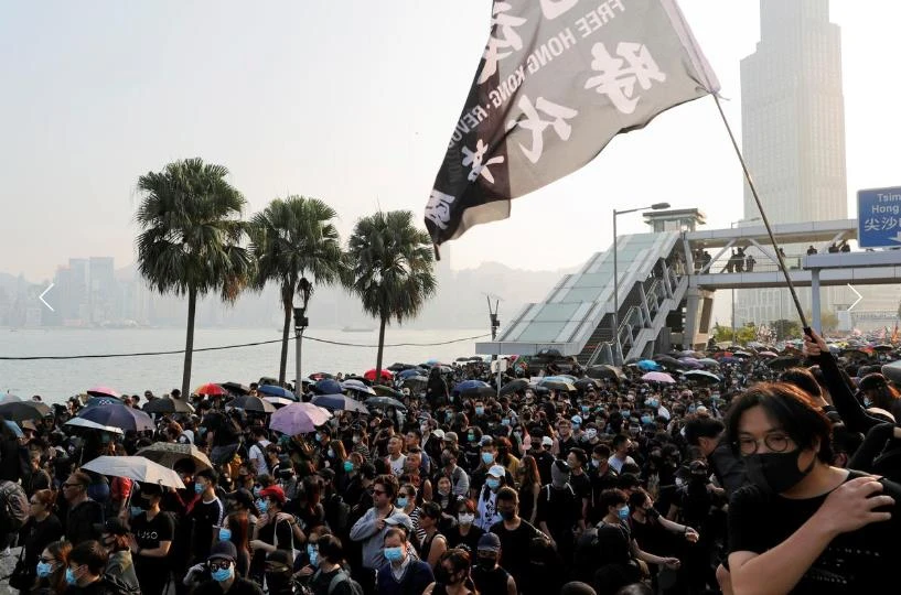 Vào chiều 1-12, sau một tuần khá im ắng, hàng ngàn người Hong Kong bao gồm thanh thiếu niên, cả các gia đình và con nhỏ đã tập trung tuần hành ở khu vực cảng Victoria thuộc bán đảo Cửu Long.