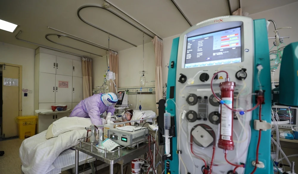 Một bệnh nhân COVID-19 ở Vũ Hán (Trung Quốc) được điều trị bằng phương pháp ECMO, được biết đến với cách gọi “phổi nhân tạo”. Ảnh: AFP