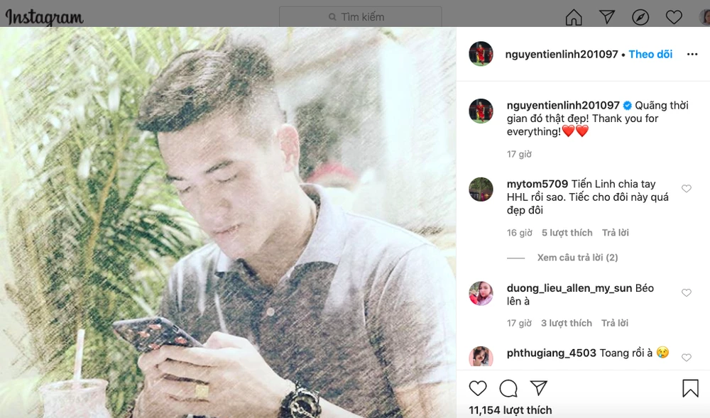Cầu thủ Tiến Linh chia sẻ trên trang cá nhân: "Quãng thời gian đó thật đẹp. Thank you for everything!".