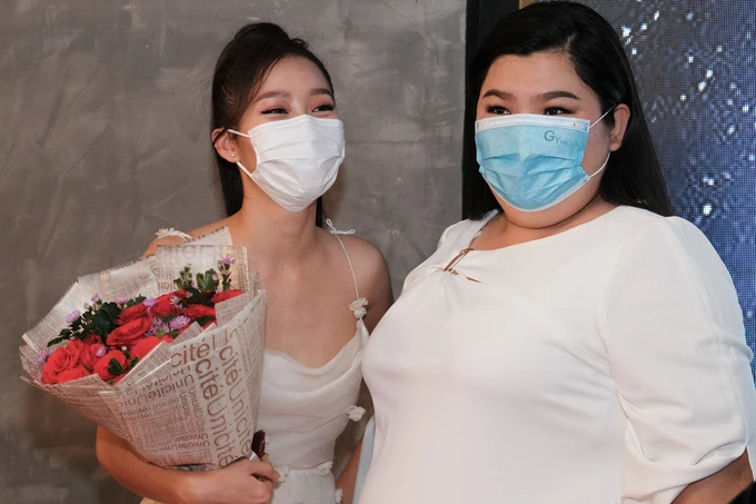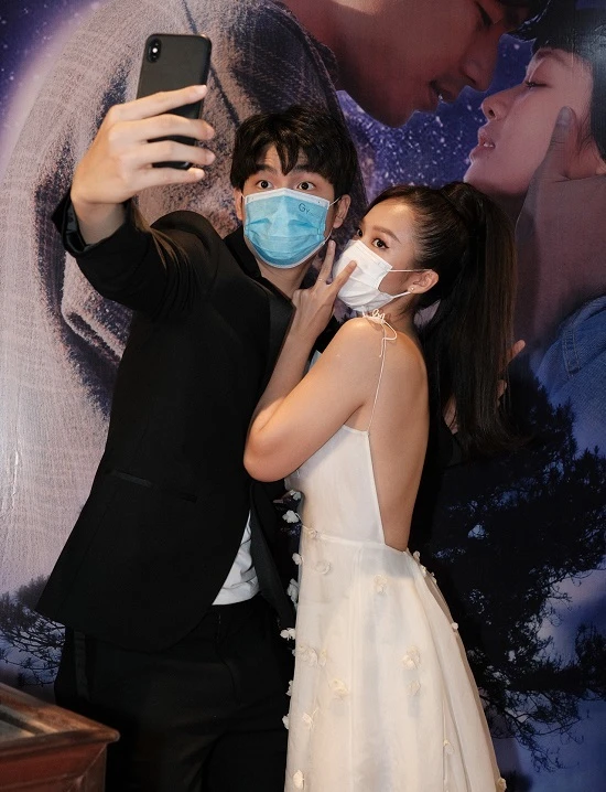 Diễn viên trong phim cũng giao lưu với khán giả qua khẩu trang. Ảnh: V.THỊNH