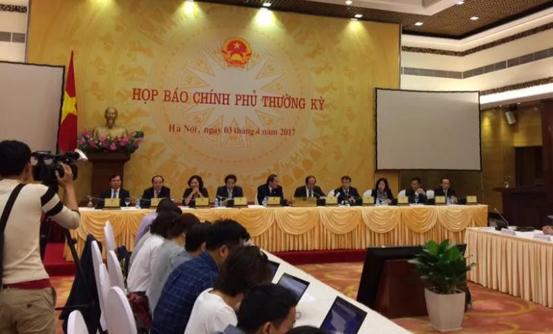 Quang cảnh buổi họp báo Chính phủ chiều ngày 3-4. Ảnh: Đức Minh
