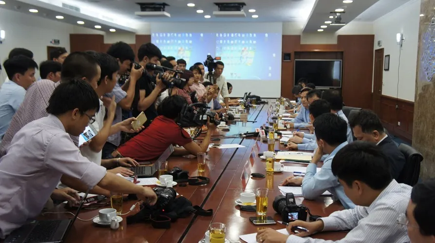 Đến 14 giờ 50 có hơn 30 phóng viên, nhà báo đã đến tham dự buổi họp báo. Tuy nhiên, chưa thấy sự hiện diện của cơ quan chính quyền địa phương.