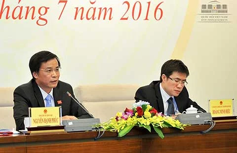 Tổng Thư ký QH Nguyễn Hạnh Phúc trả lời báo chí tại buổi họp báo chiều 29-7. Ảnh: QH