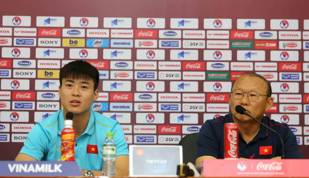 Phía Thái Lan hỏi liệu HLV Park Hang-seo có đưa tiền đạo đang đá cho Sint Truiden - Công Phượng ra sân trong đội hình xuất phát, HLV Park Hang-seo trả lời cũng có thể đưa ra, cũng có thể không đưa ra đội hình xuất phát và ông phải cân nhắc.