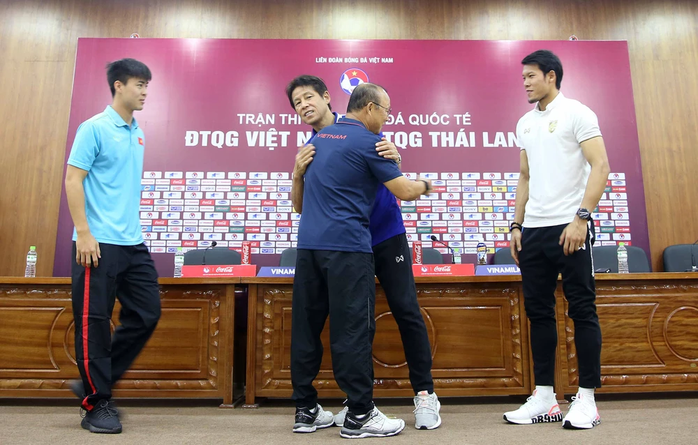 HLV Nishino khen bóng đá Việt Nam đang tiến bộ rất nhanh, HLV Park Hang-seo cũng khen lại bóng đá Thái Lan luôn làm cho Việt Nam thú vị và là đối trọng của nhau.