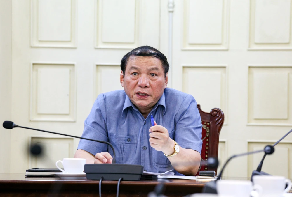 Thứ trưởng Bộ VH-TT&DL Nguyễn Văn Hùng chủ trì phiên họp. Ảnh: HQ