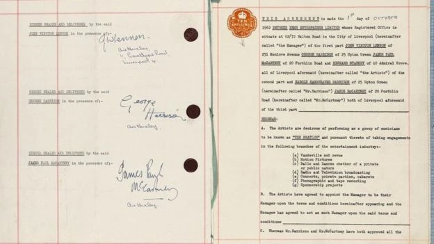 Đây là bản hợp đồng duy nhất được ký giữa người quản lý Brian Epstein với bốn thành viên ban nhạc khi ấy là John Lennon, Paul McCartney, George Harrison và Ringo Starr.