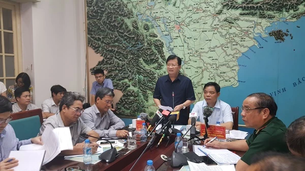 Tại cuộc họp này, ông Hoàng Đức Cường, Giám đốc Trung tâm Dự báo Khí tượng Thủy văn Trung ương, cho biết thông tin hiện nay đang tiếp tục hình thành một cơn áp thấp nhiệt đới tiến vào biển Đông. Theo dự kiến thì áp thấp nhiệt đới sẽ đổ bộ vào biển Đông vào tối 14-10, đồng thời gây ra mưa lớn cho các tỉnh từ Quảng Bình đến Bình Định.