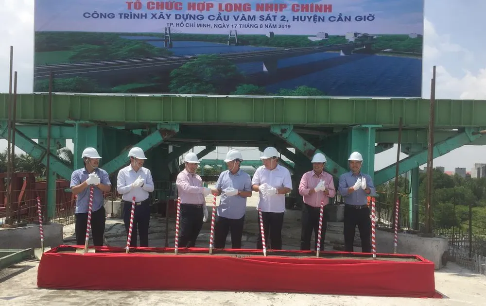 Ngày 17-8, Ban quản lý dự án đầu tư xây dựng các công trình giao thông (Ban giao thông, chủ đầu tư, thuộc UBND TP) và Liên danh Công ty CP Xây dựng NASACO (đơn vị thi công) đã tiến hành hợp long nhịp chính bằng dầm hộp đúc hẫng cân bằng liên tục của cầu Vàm Sát 2, huyện Cần Giờ.