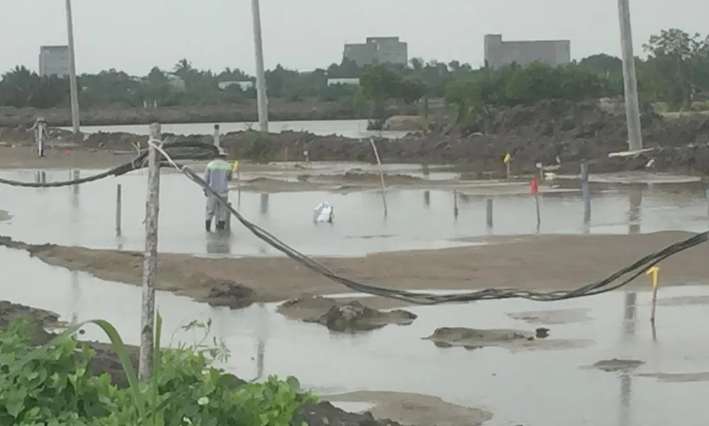 Hiện đường dẫn ở hai đầu cầu đang được gia tải, cắm bấc thấm để chuyển sang giai đoạn trải đá nền hạ, làm mặt đường.