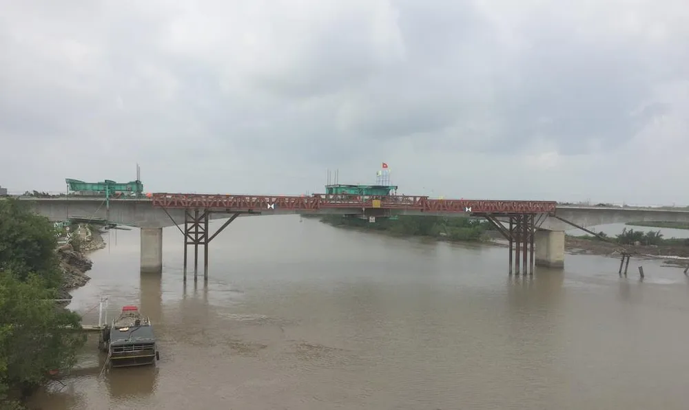 Cầu Vàm Sát 2 (nhìn từ cầu cũ) đã được hợp long, nối nhịp.