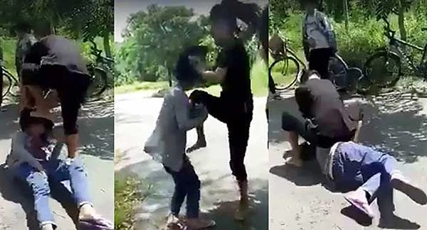 Nếu những hình ảnh này không được tung lên mạng xã hội, sẽ không ai biết được nhóm của Nhí Tino đã đánh một nữ sinh tàn bạo như thế nào. (Ảnh cắt từ clip)