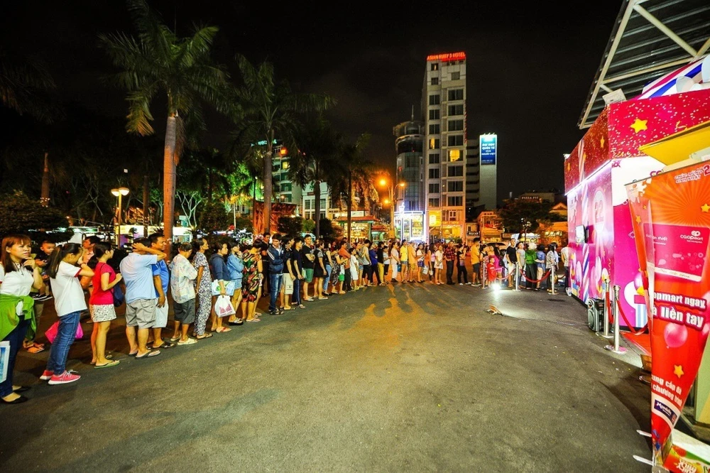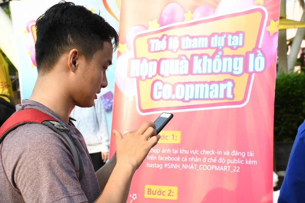Hàng ngàn bạn trẻ đã tập trung để trải nghiệm những điều thú vị từ hộp quà khổng lồ Co.opmart lần đầu xuất hiện. Một số khách lớn tuổi cũng rất “sẵn lòng” hòa mình vào dòng người để tham gia sự kiện.