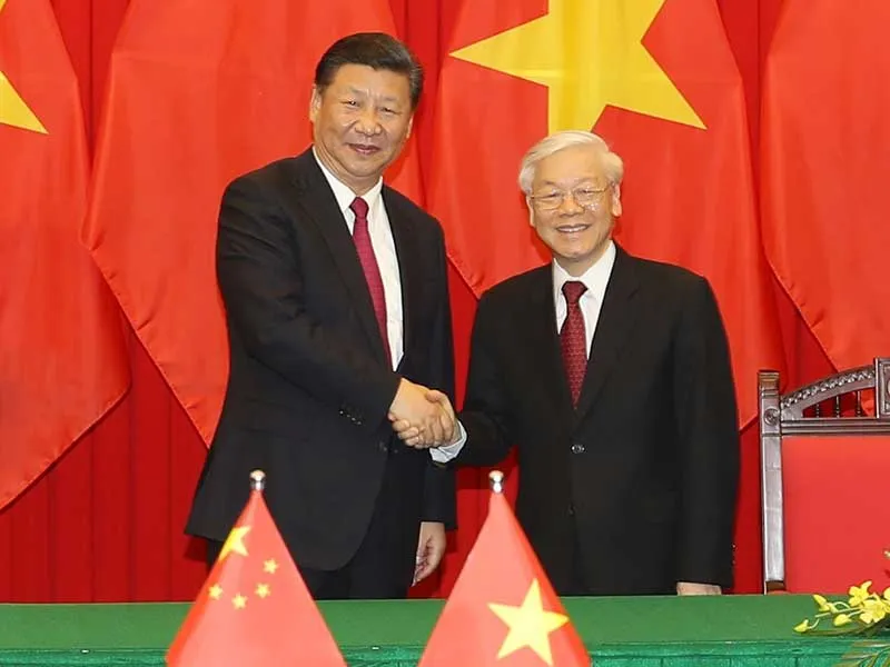 Tổng Bí thư Nguyễn Phú Trọng và Tổng Bí thư, Chủ tịch Trung Quốc Tập Cận Bình tại lễ ký kết các văn kiện hợp tác giữa hai nước. Ảnh: TTXVN