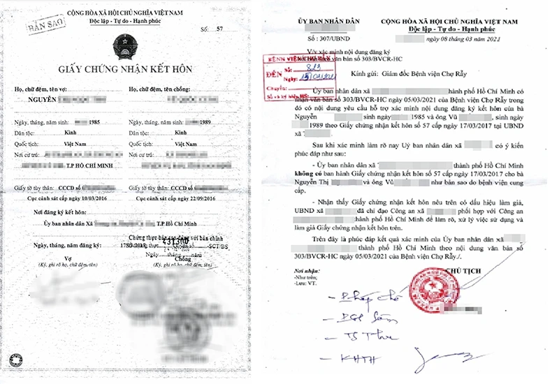 Chưa dừng lại, cặp vợ chồng sau đó còn sang BV Chợ Rẫy để tiếp tục đăng ký hiến ghép tạng. Sự việc được TS-BS Dư Thị Ngọc Thu, Trưởng Đơn vị điều phối ghép các bộ phận cơ thể người BV Chợ Rẫy, phát hiện nhờ từng nghe kể về trường hợp này khi tham dự hội thảo hiến ghép tạng ở BV ĐH Y Dược TP.HCM. “Sau đó, kết quả thẩm tra từ UBND địa phương nơi cặp vợ chồng đăng ký kết hôn là giả, không có trong sổ hộ tịch nên chúng tôi đã chuyển cơ quan công an làm việc tiếp” - BS Thu nói.
