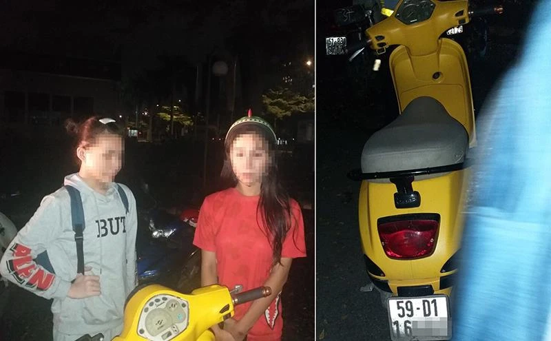 Theo thông tin ban đầu, tối 7-8, bảo vệ khu Phú Mỹ Hưng (quận 7) phát hiện hai cô gái chạy xe Vespa 59D1-161… màu vàng giật đồ của một người phụ nữ Hàn Quốc đang đi bộ trên đường Nguyễn Đức Cảnh (phường Tân Phong) nên hô hoán, truy đuổi.