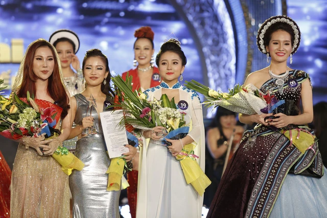 Ngọc Ánh (mặc váy trắng) giành giải nhì ở Dòng nhạc dân gian. Ảnh: plo.vn