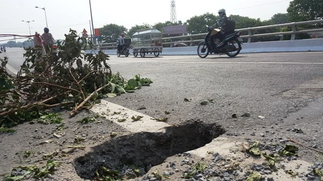 Hố "tử thần" trên cầu Tân Phong. Ảnh: Facebook